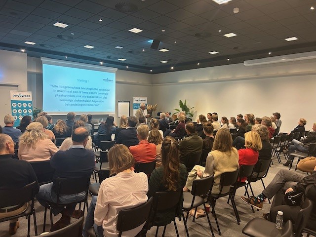 Op donderdag 30 november vond de jaarlijkse OncoWest Werkconferentie plaats in het ECC in Leiden. Met de ruim 90 deelnemers werd kennis gedeeld over de ontwikkelingen in de oncologische zorg in de regio en hoe we de regionale samenwerking verbeteren. Ook werd gedebatteerd over een aantal prikkelende stellingen. Verschillende sprekers lieten thema’s aan bod komen met focus op netwerknormen, IZA, concentratie en spreiding van oncologische zorg in de regio en de implementatie van het digitale MDO Portaal Vitaly dat als dataplatform gaat dienen om regionale MDO’s te ondersteunen. Het was een mooie inhoudelijke netwerkbijeenkomst!