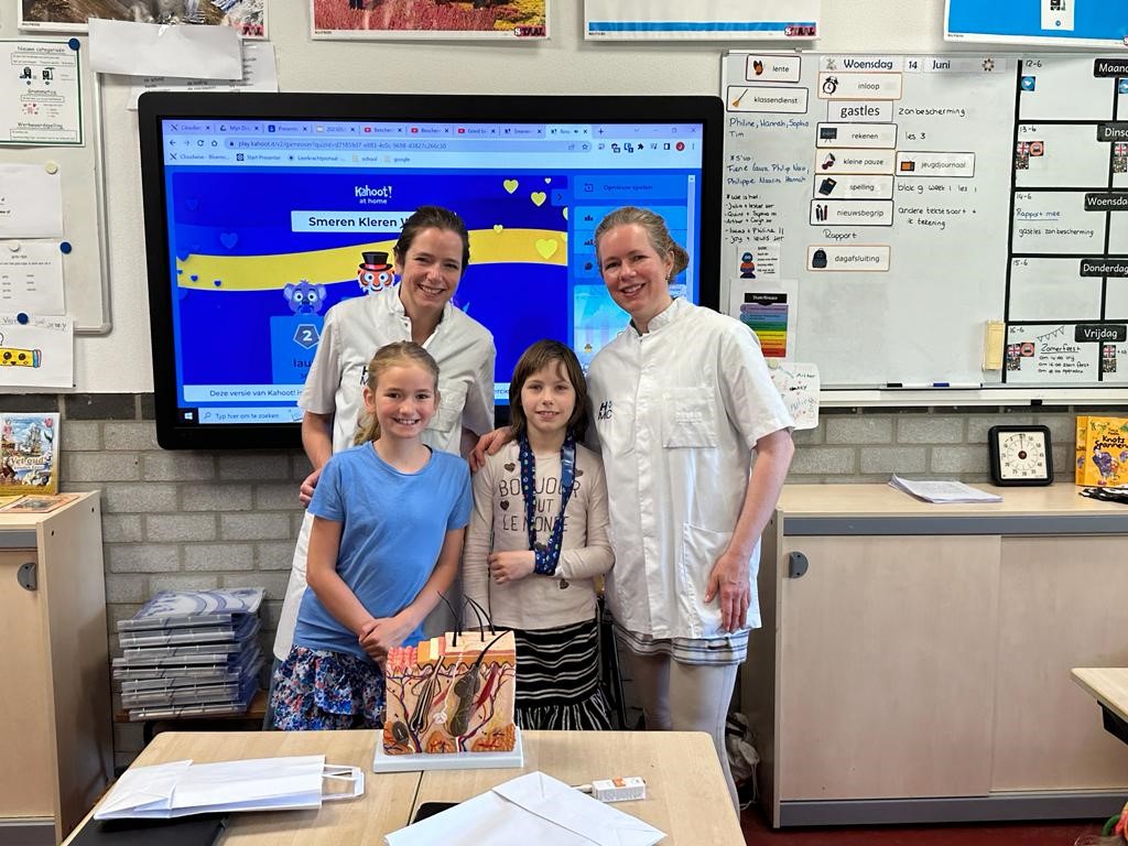 Ook Marieke Straver (chirurg), Anne-Roos Schrader (patholoog gespecialiseerd in de huid), Tessa van Henten (aios huidziekten), Marieke Straver (chirurg), Anne van Beurden (chirurg) en Lydia Vos (dermatoloog) zijn allen lid van het expertteam Huid en stonden voor de klas. De één op de Bloemcampschool in Wassenaar, de anderen op de Montessorischool in Oegstgeest en basisschool de Nijepoort in Groenekan. Allen gaven dezelfde duidelijke boodschap: ‘Door goed en regelmatig in te smeren met zonnebrandcrème voorkom je verbranding door de zon en daarmee verklein je de kans op huidkanker. Het is écht belangrijk om kinderen dit op jonge leeftijd aan te leren.’