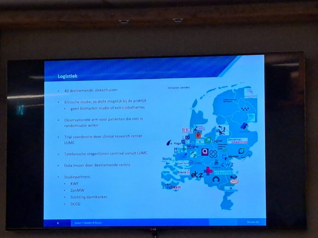 De bijeenkomst werd gehouden op 21 november 2023 in de Hortus Botanicus in Leiden. Hans Gelderblom, vertegenwoordiger van alle oncologie commissies in de OncoWest regio, opende de bijeenkomst. Het programma begon met een toelichting op de verschillende oncologiestudies die in de regio gaan starten of al lopen, gepresenteerd door Tom van der Hulle (internist-oncoloog LUMC) en Johanneke Portielje (hoogleraar interne oncologie LUMC). Opvolgend gaf Judith Kroep (internist-oncoloog en  hoofdonderzoeker gynaecologische kanker) een update over de behandeling van het gemetastaseerd mammacarcinoom. Daarna lichtte Addy van de Luijtgaarden (internist-oncoloog Reinier de Graaf ziekenhuis) de aanpak en mogelijkheden van thuis behandelen toe. Waarbij chemotherapie niet in het ziekenhuis maar bij de patiënt thuis wordt gegeven in samenwerking met een thuiszorgorganisatie. Immunotherapie is daarin een geschikte geneesmiddelengroep waarmee  begonnen kan worden. Ook was er tijdens de bijeenkomst gelegenheid om casuïstiek te bespreken, en dit werd gepresenteerd door Rienke Fijn (ANIOS interne geneeskunde Groene Hart Ziekenhuis) over de ‘witte raaf’ en cardiale toxiciteit van CPI.
